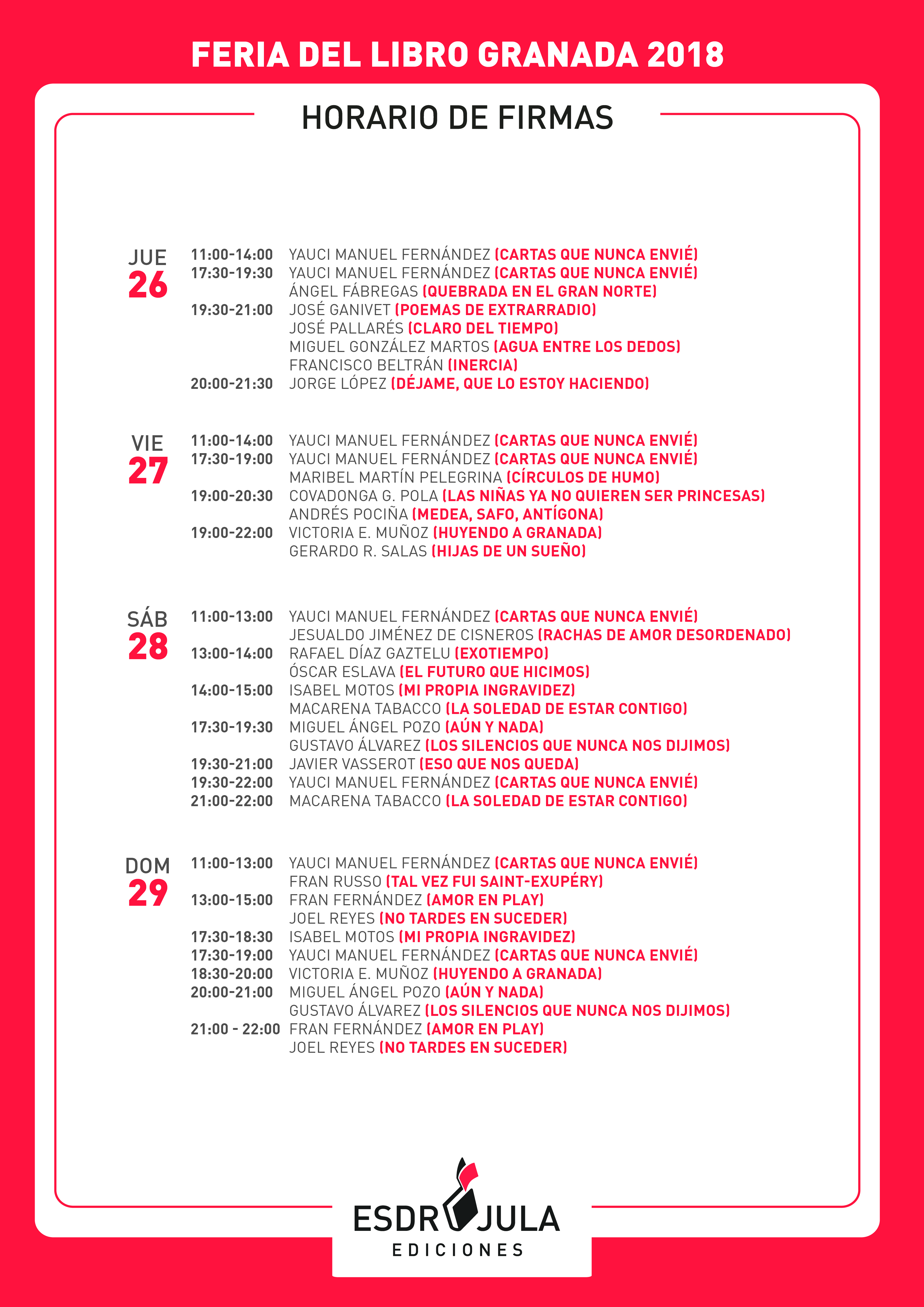 horario_firmas_2018 (2) Publicado por gerardorodriguezsalas Escritor y Profesor Titular de Literatura Inglesa (UGR) Ver todas las entradas de gerardorodriguezsalas