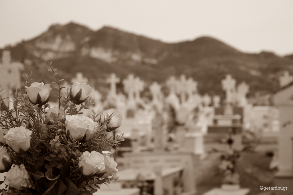 Cuando entró en el cementerio, le sorprendió ver a la gente a pesar del vendaval. Daba pena ver tanto destrozo: jarrones hechos añicos, esponjas rodando por los pasillos, macetas reventadas por los suelos y sobre las tumbas. Ensordecida por el viento, absorbió los colores: crisantemos, gladiolos, calas, rosas, margaritas, lirios, camelias, claveles… Daba igual que las flores estuvieran primorosamente colocadas o esparcidas por todos lados. Abrió los ojos de par en par y aspiró una magia desordenada.