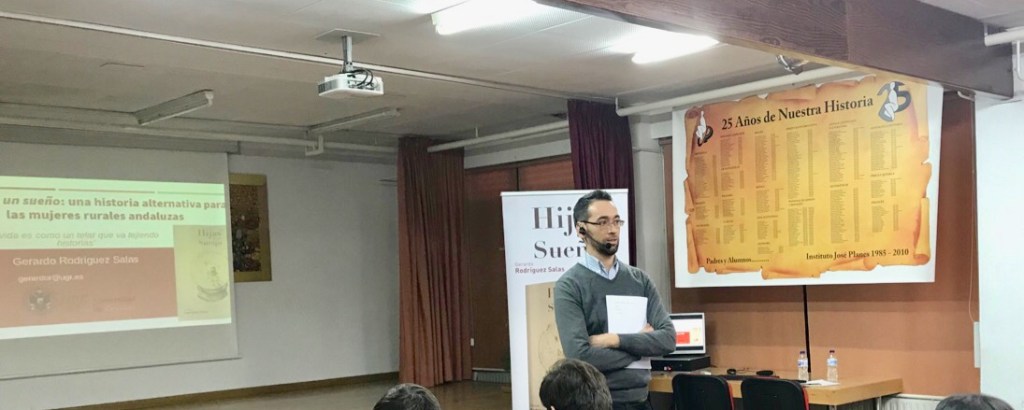 En un salón de actos con 70 alumnos y alumnas de 1ª de Bachillerato, impartí mi charla sobre Hijas de un sueño, seguida de un interesantísimo debate y preguntas por parte del alumnado.