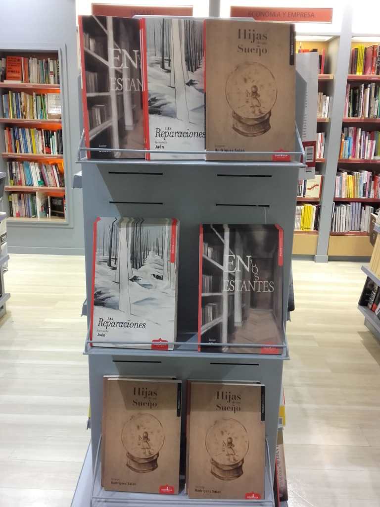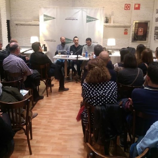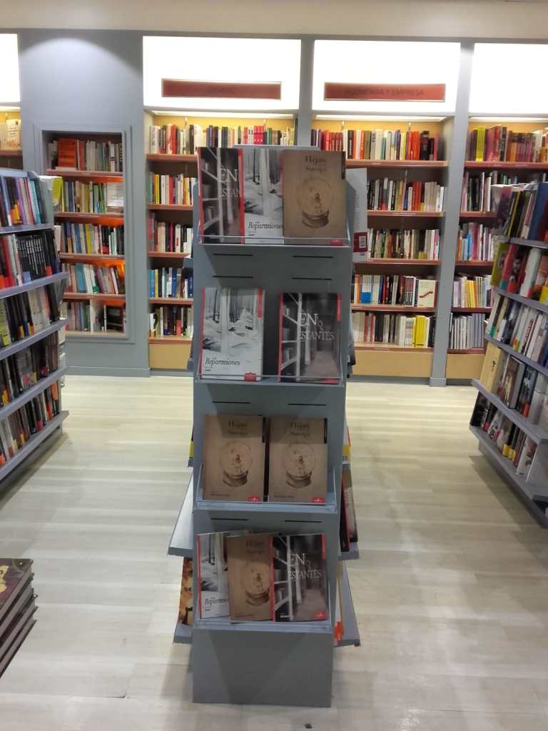 Antes del evento, ya lucían nuestros libros por los estantes de El Corte Inglés y se anunciaba nuestra intervención por megafonía.
