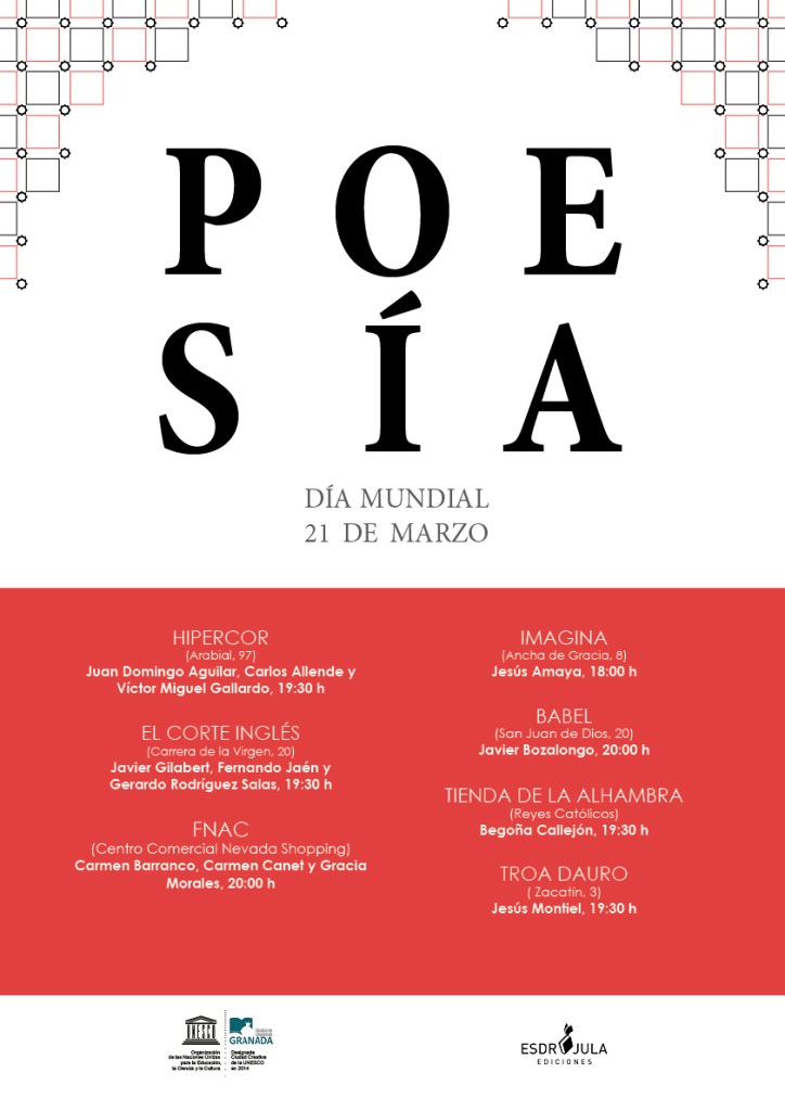El 21 de marzo de 2019 se celebró en Granada, por tercer año consecutivo, el Día Mundial de la Poesía, con lecturas poéticas de 60 poetas granadinos distribuidas por 25 librerías de la ciudad. El acto, organizado por GRÁCIL (Granada Ciudad de Literatura UNESCO) es parte del programa Granada 2019 World Poetry Day Unesco Cities of Literature, donde 21 ciudades de todo el mundo participan.