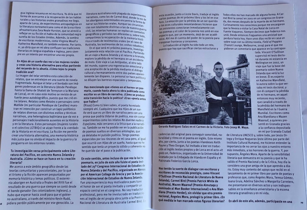 El número 7 (Diciembre 2019) de la revista cultural Lumbre me dedica una entrevista, realizada por Javier Gilabert, titulada: ‘Un telar con nuevos ritmos’ (pp. 26-31).