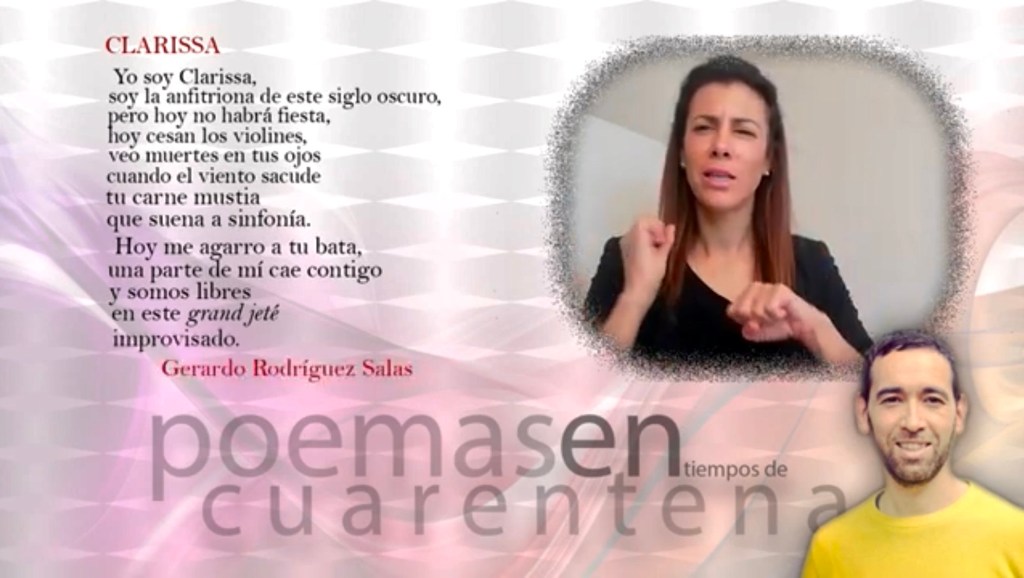 El 9 de mayo de 2020 participé en el programa ‘Poemas en tiempos de cuarentena’, organizado por el Ayuntamiento de Albolote, idea de la poeta Anunciata Vinuesa y de la traductora de lengua de signos Paqui Valero. El poema que leo es ‘Clarissa’, del libro colectivo Versos para baila o no (Almuzara 2019).
