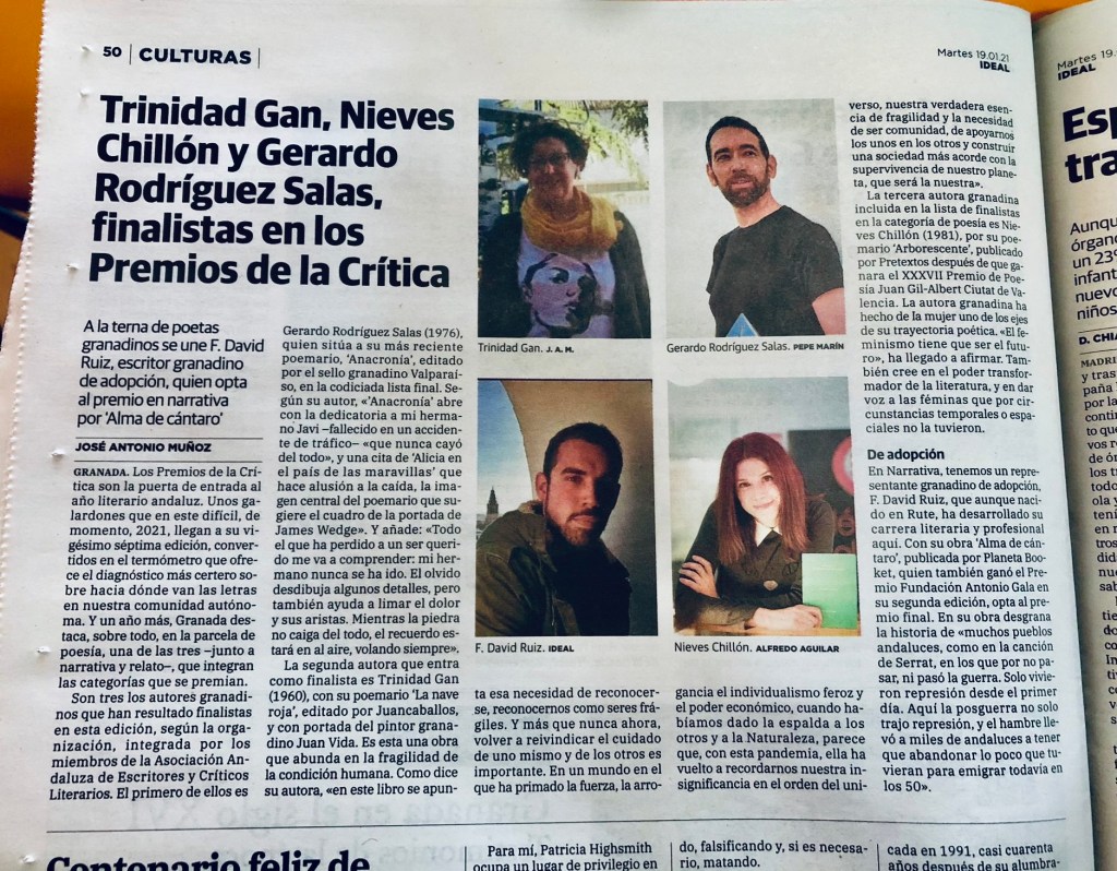 El periódico ideal se hizo eco de la noticia, visibilizando a lxs finalistas granadinxs:
