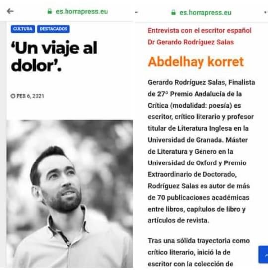 El sábado 6 de febrero de 2021 apareció mi entrevista con Abdelhay Korret titulada ‘Un viaje al dolor’ en la revista Horra Press, el centro europeo de la prensa libre.
