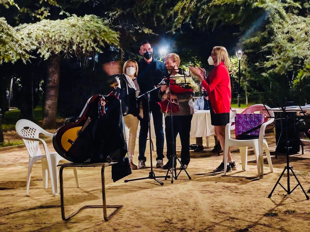 El acto concluyó con la entrega de un ramo de flores a mi madre, que muy emocionada abrazó a los amigos y amigas, así como a Aurora y Chari.