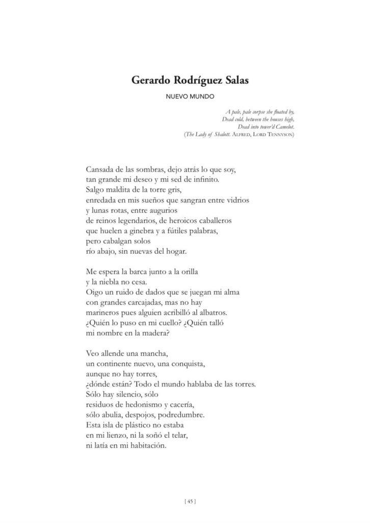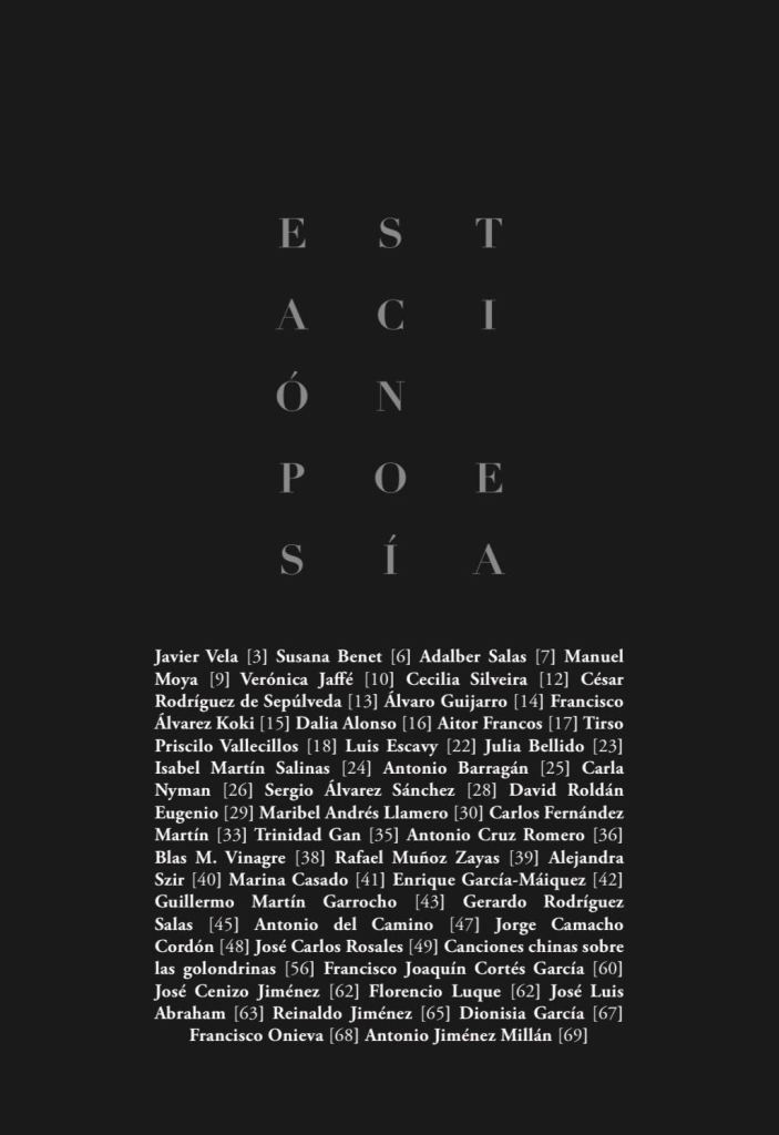 Estación poesía (ISSN: 2341-2224) es una revista cuatrimestral en papel y en red publicada por el CICUS/Centro de Iniciativas Culturales de la Universidad de Sevilla y dirigida por Antonio Rivera Taravillo en la que, tal y como se explica en su página web, ‘poetas, traductores y críticos sevillanos, sean de la comunidad académica o no, comparten espacio con los mejores autores del panorama poético español e internacional’. En su número 22 (Primavera 2021), publicado el 20 de octubre de 2021, se incluye mi poema inédito ‘Nuevo Mundo’ (pp. 45-46).