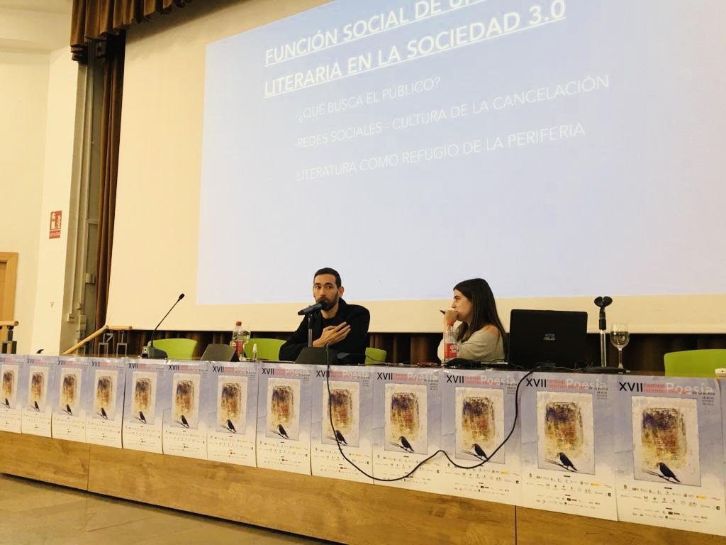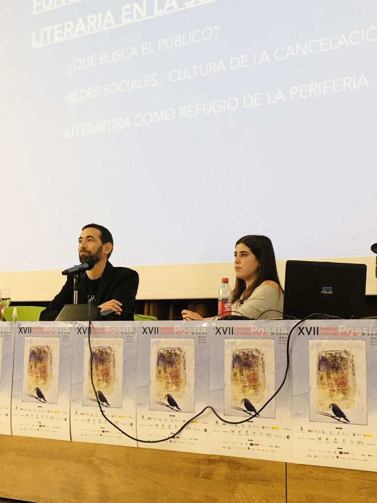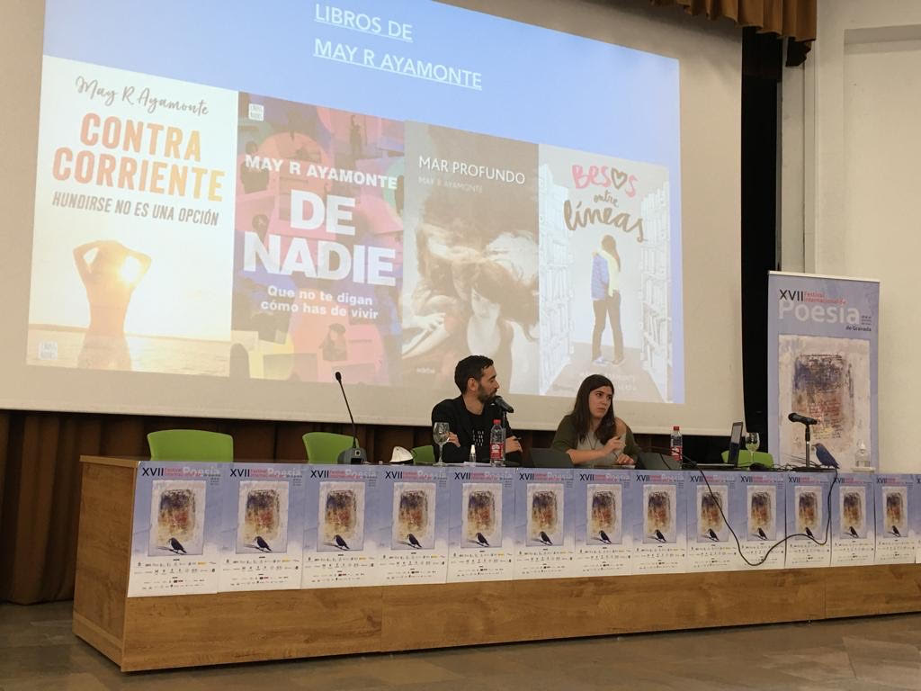 Por último, el viernes 22 de octubre, de 11 a 13 horas, tuve el placer de charlar con la booktuber R. Ayamonte sobre narrativa y redes, fomento de lectura, docencia, mundo editorial, narrativa y proceso de creación. Gracias, May, por una interesantísima charla de dos horas que pasaron volando. Gracias al festival por crear un espacio para acercar estas cuestiones al alumnado. Gracias por una intensa semana de poesía, música y reflexiones.