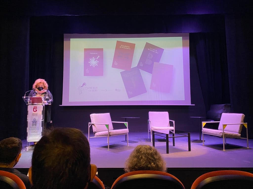 El acto comenzó con unas palabras de la Diputada de Cultura, Memoria Histórica y Democracia, Fátima Gómez Abad, que explicó la apuesta de la Diputación y el Patronato FGL por una colección de teatro dedicada a dar voz a autores y autoras actuales en diálogo con Lorca con propuestas situadas en los márgenes del lenguaje. Asimismo, introdujo el número 0 de la colección, mi libro Vulanicos.