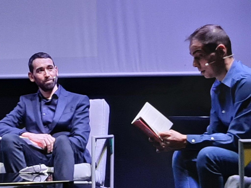 Alberto Conejero comenzó explicando algunas ideas centrales de su magnífico prólogo al libro, yo respondí contextualizando Vulanicos y, a partir de ahí, entablamos una conversación en torno a temas como la dramaturgia de Vulanicos, mi apuesta por las hablas rurales, el teatro como vínculo y como espacio que cede la silla a personajes anónimos y olvidados, el imaginario lorquiano, etc.