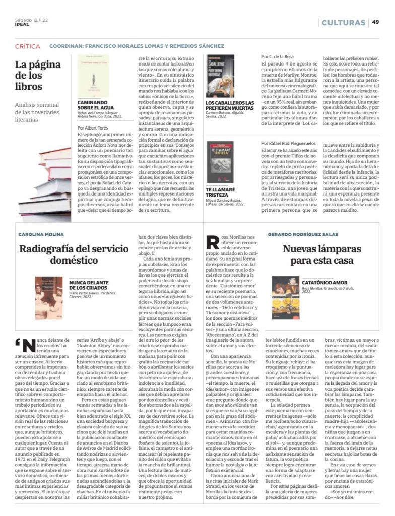 Como anuncia una de las citas iniciales de Mark Strand, en los versos de Morillas la tinta se desborda por la comisura de los labios fundida en un torrente silencioso de emociones, muchas veces contenidas por la ironía. Su lenguaje rehúye el barroquismo y la puntuación y, con frecuencia, hace uso de frases hechas o muletillas que otorgan a sus versos una efectiva cotidianeidad que nos interpela.