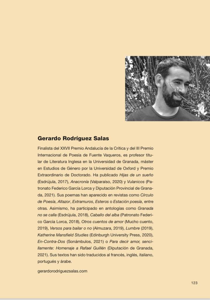 ANTOLOGÍASmetAMORfosis: Colección Dafne (2023) 21 diciembre, 2023 gerardorodriguezsalas Compártelo: Haz clic para compartir en X (Se abre en una ventana nueva) X Haz clic para compartir en Facebook (Se abre en una ventana nueva) Facebook Me gusta Cargando... Relacionado Páginas: 1 2 Publicado por gerardorodriguezsalas Escritor y Profesor Titular de Literatura Inglesa (UGR) Ver todas las entradas de gerardorodriguezsalas