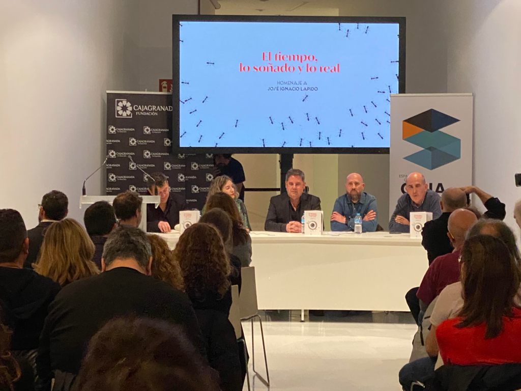 El homenaje consistió en una presentación del volumen en la sala de exposiciones temporales de la Fundación, donde Lapido estuvo acompañado de las y los coordinadores del volumen, así como del editor, Miguel Ángel del Arco y el Director de la Fundación (Fernando Bueno).