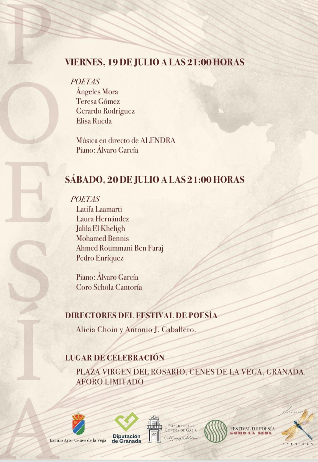 EventosI Festival de Poesía ‘Como la seda’ (19-20/7/24) 20 julio, 202420 julio, 2024 gerardorodriguezsalas Mis queridas Ángeles Mora, Teresa Gómez, Elisa Rueda y yo leímos nuestros poemas (en ocasiones acompañadxs por la sutil melodía del piano de Álvaro García), arropadxs por un público entregado y atento. Compártelo: Haz clic para compartir en X (Se abre en una ventana nueva) X Haz clic para compartir en Facebook (Se abre en una ventana nueva) Facebook Me gusta Cargando... Relacionado Páginas: 1 2 Publicado por gerardorodriguezsalas Escritor y Profesor Titular de Literatura Inglesa (UGR) Ver todas las entradas de gerardorodriguezsalas