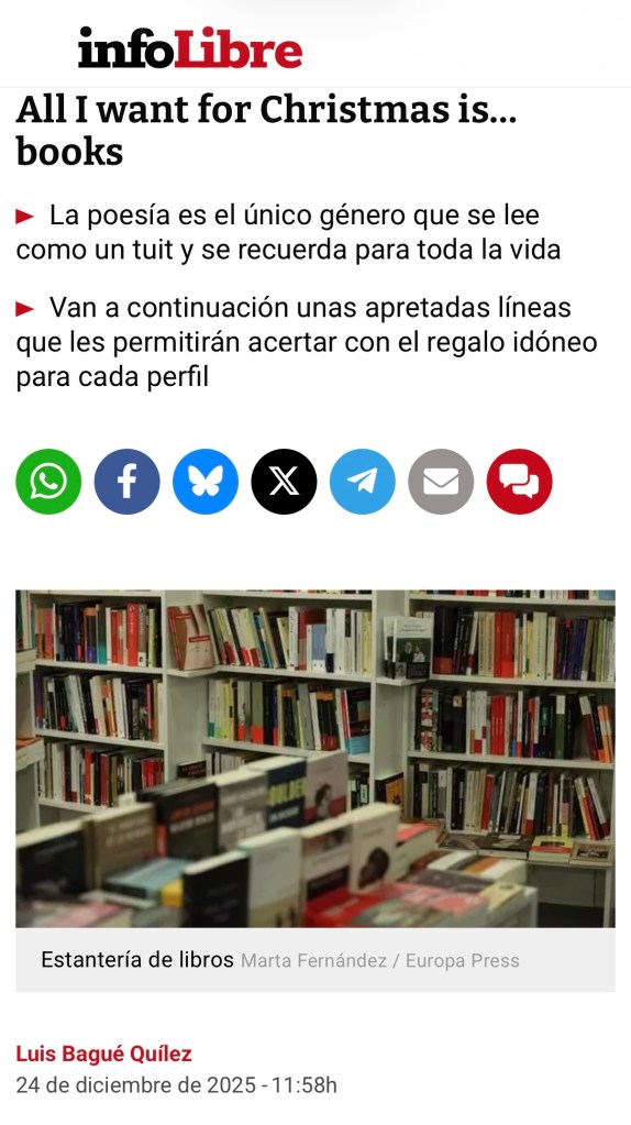 Luis Bagué Quílez recomienda Oxford Circus en su divertida selección de poemarios de 2025 para Infolibre: