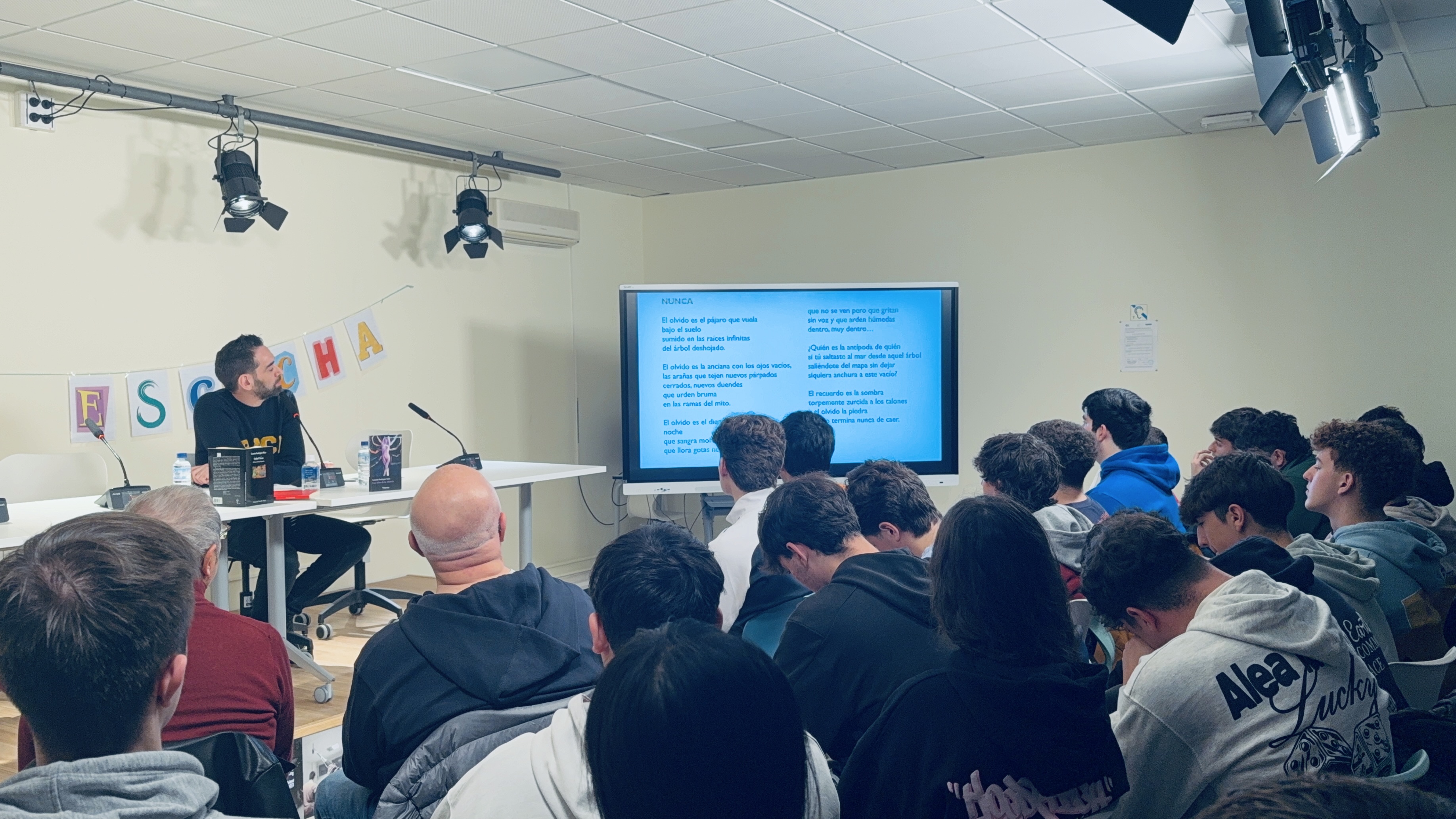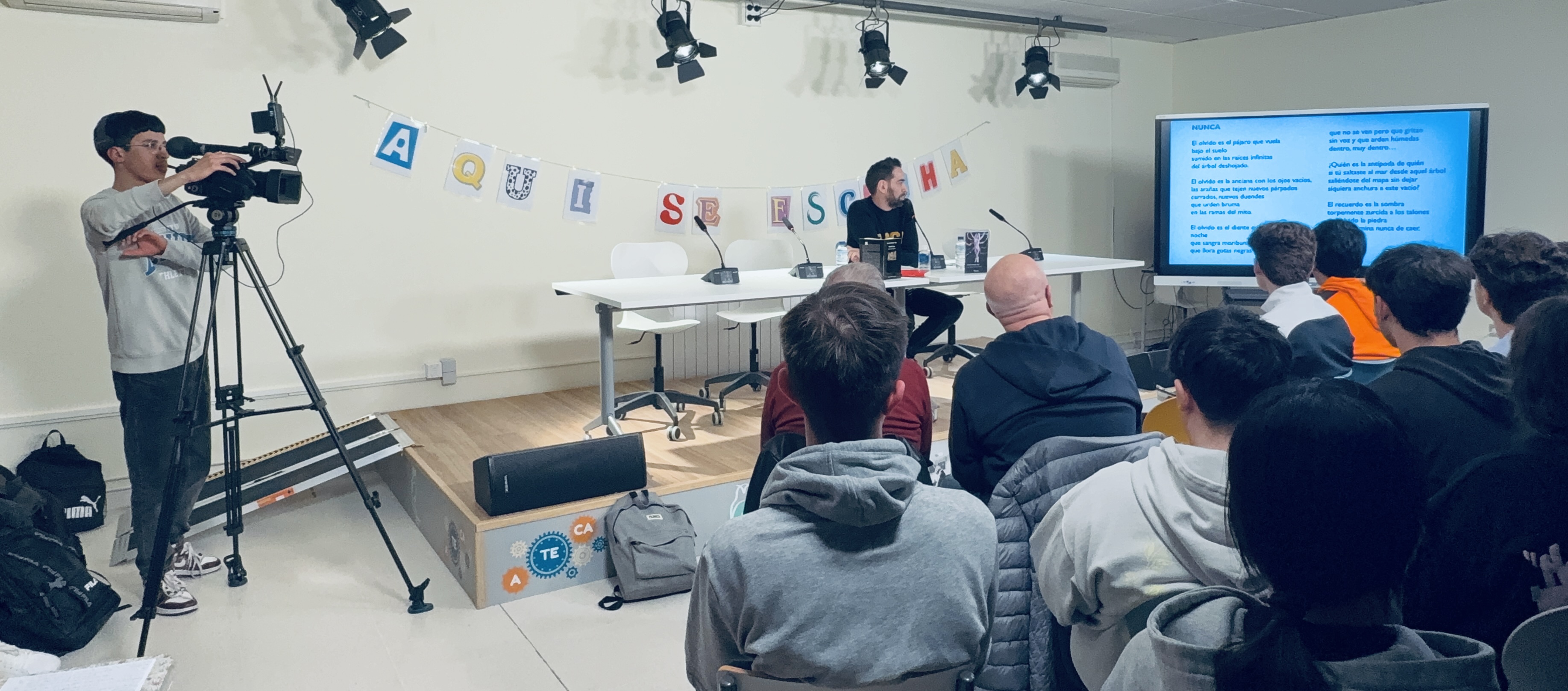 Gracias al IES Rodríguez Moñino, muy en especial a Ángela Castro, profesora del mismo, que preparó con alumnas y alumnos de Bachillerato un encuentro absolutamente inolvidable, donde me presentaron tres alumnxs y todas y todos conjuntamente leyeron para empezar mi poema ‘Escribir’. Gracias por esa charla y el debate que suscitó, por la oportunidad de conocer la escritura que algunas y algunos de los alumnos llevan a cabo (Fernando, Irene). Gracia a Antonio Castro y a Ángela por hacerlo posible y a todo el centro por acogerme.