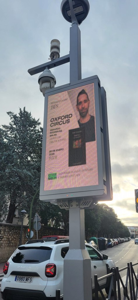 EventosJaén: Presentación de Oxford Circus (29/1/26) 1 febrero, 2026 gerardorodriguezsalas El cartel estuvo colgado en las marquesinas de toda la ciudad. Compártelo: Compartir en X (Se abre en una ventana nueva) X Comparte en Facebook (Se abre en una ventana nueva) Facebook Me gusta Cargando... Relacionado Páginas: 1 2 Publicado por gerardorodriguezsalas Escritor y Profesor Titular de Literatura Inglesa (UGR) Ver todas las entradas de gerardorodriguezsalas