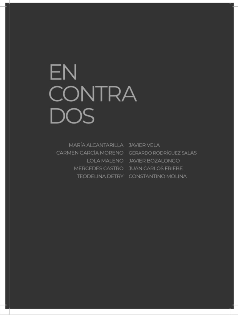 El proyecto titulado EnContraDos (Sonámbulos ediciones, 2021) ofrece un diálogo artístico entre 5 fotógrafas (María Alcantarilla, Carmen García Moreno, Lola Maleno, Mercedes Castro y Teodelina Dentry) y 5 poetas (Javier Vela, Gerardo Rodríguez Salas, Javier Bozalongo, Juan Carlos Friebe y Constantino Molina). Cada unx de sus miembros contribuye con 5 fotografías o 5 poemas inéditos.