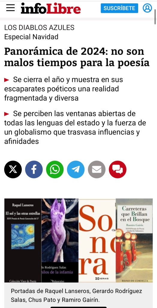 La crítica literaria Paloma Fernández Gomá reseña mi poemario Los hilos de la infamia (16 noviembre 2024) en su blog literario.