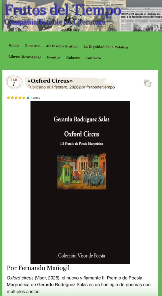 Reseña de Oxford Circus en el blog literario del profesor y poeta Fernando Mañogil, Frutos del Tiempo.